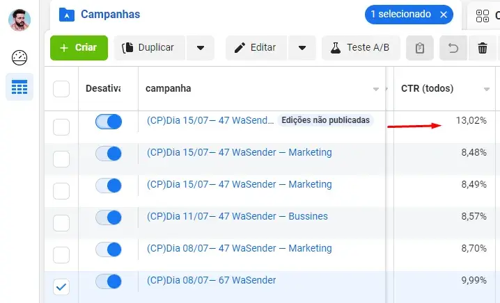 Anúncios com CTR Acima de 13%