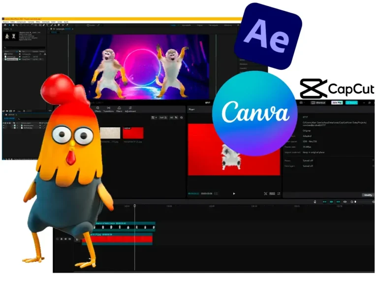 Usamos o CapCut no Pc e também o Canva, mas você pode usar outros editores como after effects e camtasia. Você pode criar sua arte estatica no canva ou photoshop e apos salvar em PNG ou JPG, assim basta subir nos editores de video citados e arrastar seu mascote para a arte, arraste tambémum música e esta tudo pronto.