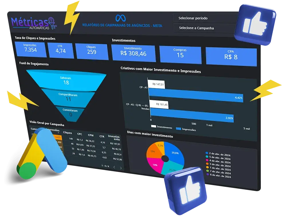 O MÉTRICAS AUTOMÁTICAS® é a ferramenta de integração com o Facebook ADS e Google ADS com um robusto sistema de dados em Tempo Real.