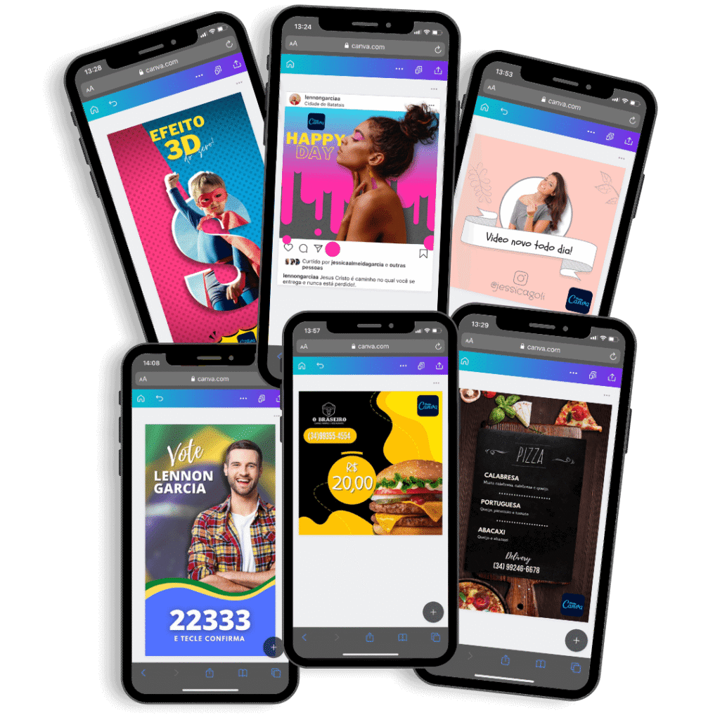 Com o passo a passo que eu criei, hoje mesmo você pode criar Artes, Flayers, Anúncios de Ofertas, Stories, Logomarcas, cartões interativos, cardápios, feed 3D, Avatares, Carroceis, Vídeos Nuggets E MUITO MAIS. Com apenas um CELULAR, ONLINE E GRATUITO!