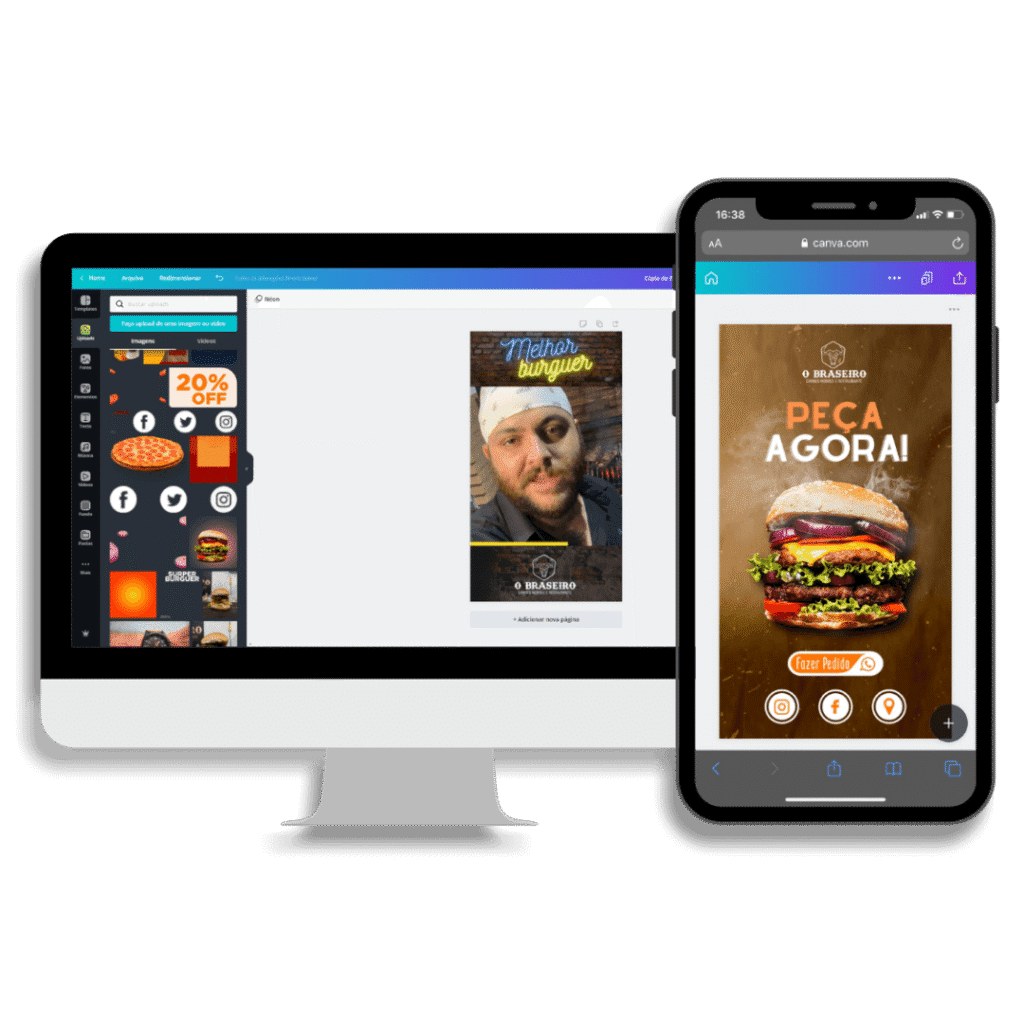 De forma alguma, o Canva também pode ser aberto pelo celular e você será o mesmo resultado como se estivesse editando pelo computador!